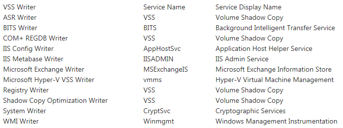 Auf dem betroffenen Server kann man mit “vssadmin list writers” überprüfen, ob ein Writer fehlerhaft arbeitet. Dies war bei mir der Fall für den “IIS Config Writer” und “IIS Metabase Writer”