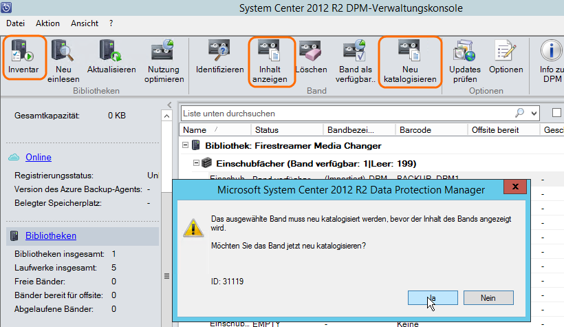 Danach werden in DPM alle Bänder wieder als Empty angezeigt.