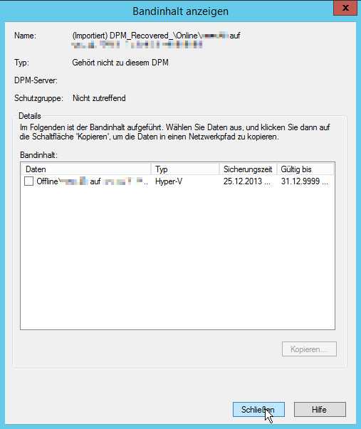 Auf dem neuen DPM Server habe ich nun das bestehende virtuelle Band eingelesen.