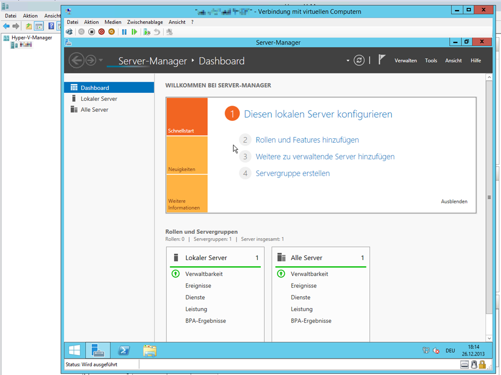 Nach der erfolgreichen Wiederherstellung habe ich den wiederhergestellten virtuellen Server in Hyper-V importiert und getestet, ob er wieder zu laufen kommt. Dies hat problemlos funktioniert.