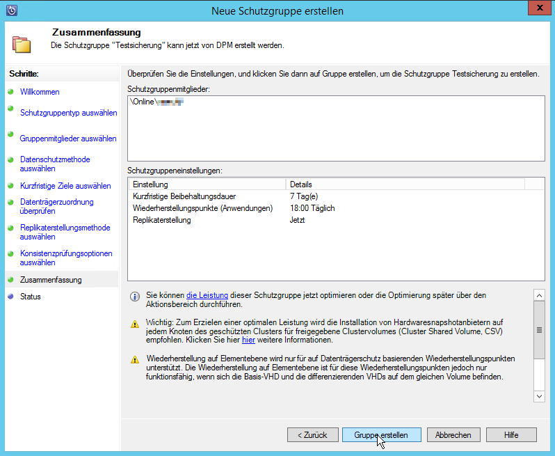 Am Schluss sollte man daran denken, die Schutzgruppen wieder auf die immer verfügbare Library umzustellen.