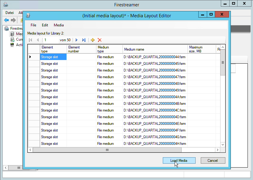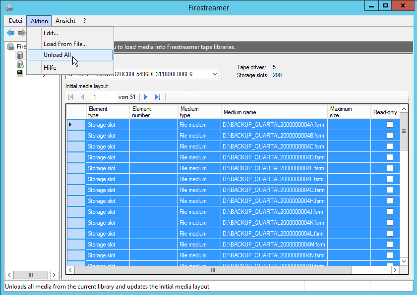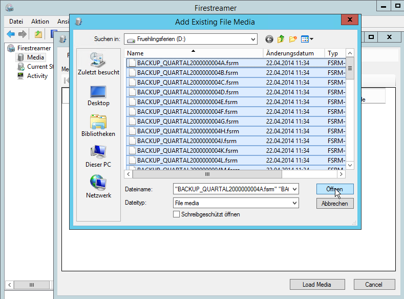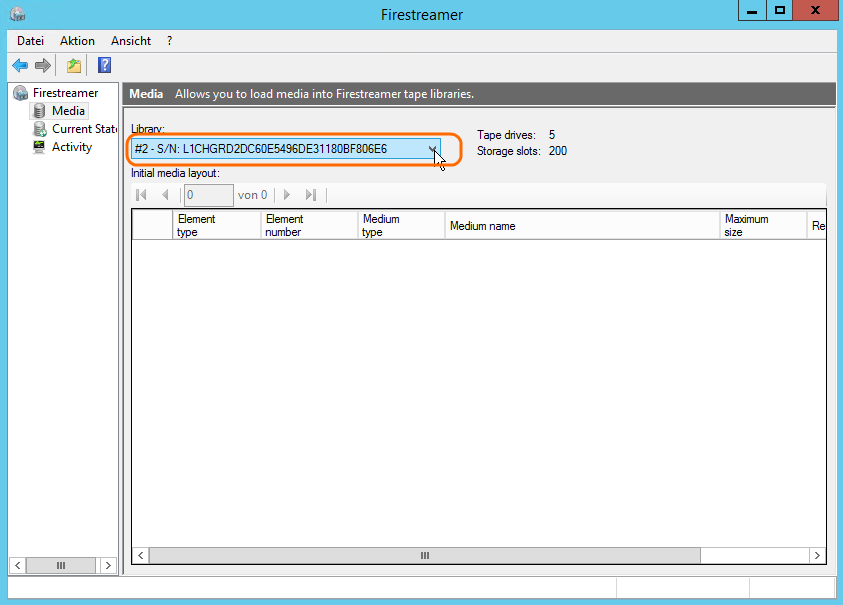 Für dieses Quartalsbackup habe ich also eine USB Festplatte zuerst gemäss Anleitung für DPM konfiguriert. In Firestreamer habe ich eine zweite Library für diese Quartalsbackups angelegt. Diese muss nun ausgewählt werden.