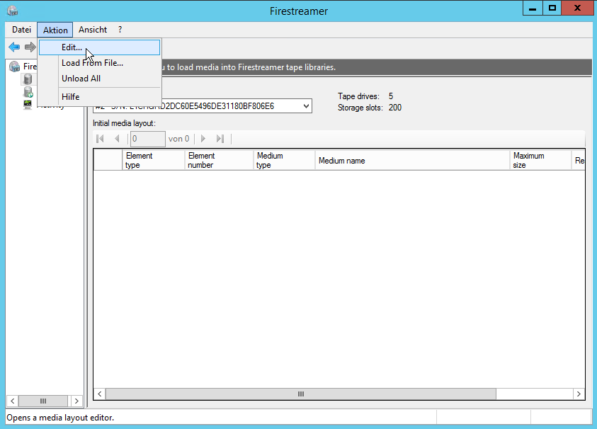 Durch einen Klick auf “Aktion” –> “Edit…” kommt man in den Media Layout Editor.
