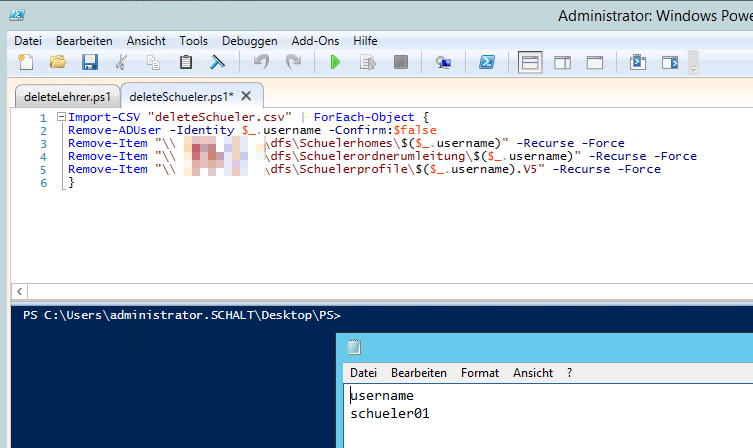 Import-CSV „deleteSchueler.csv“ | ForEach-Object {