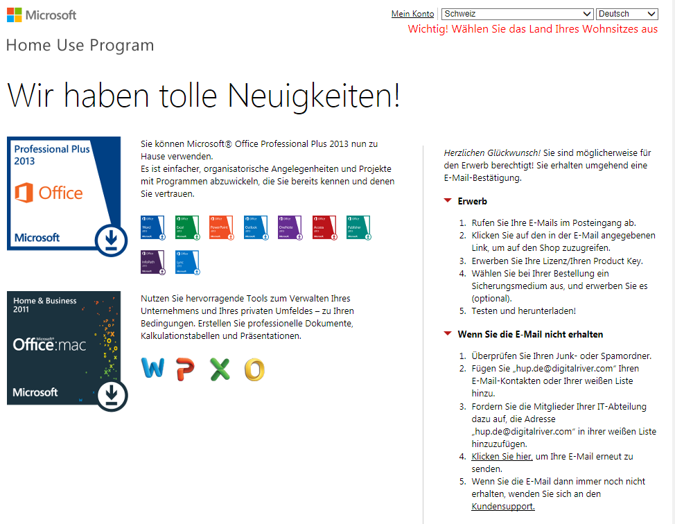 Um auf die Microsoft Home Use Program-Website zugreifen zu können, führen Sie bitte die im Folgenden beschriebenen Schritte durch: