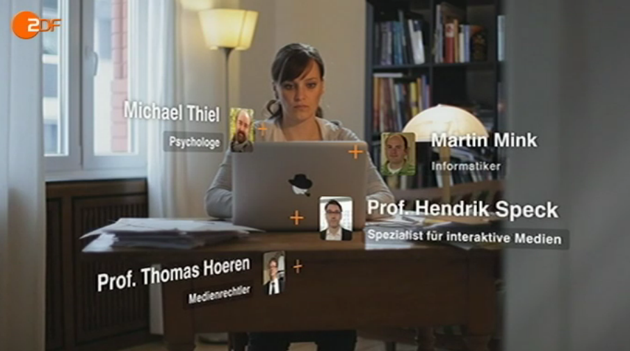 Spannend zum Beispiel die Smartphone App, die mit der TU Darmstadt entwickelt wurde, um div. persönliche Daten vom App-Benutzer auszulesen. Auch spannend ist die professionelle Recherche zu Thomas, der freiwillig an dem Test mitgemacht hat. Mit den Resultaten konfrontiert, gibt er sich zuerst ganz cool, wirkt dann aber doch verunsichert, als er den ganzen Umfang der Informationen erkennt…
