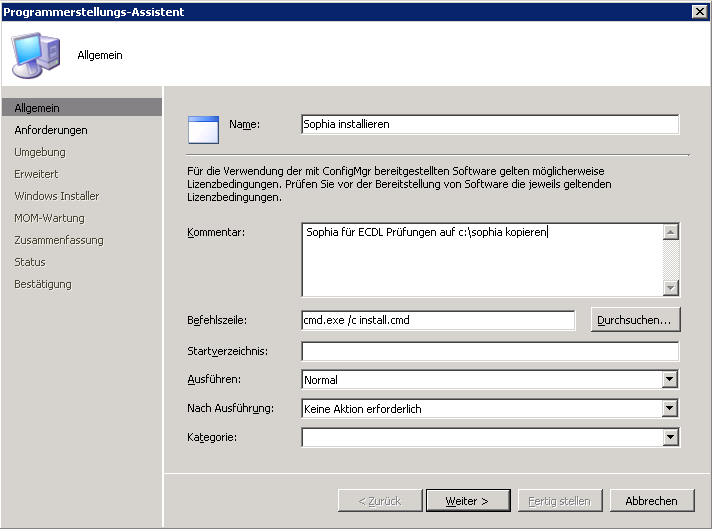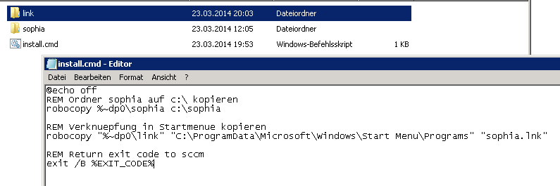 Nun kann man mit SCCM den ganzen Ordner auf einen Verteilungspunkt verteilen und als Programm das install.cmd Skript ausführen.