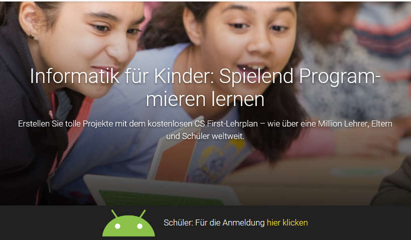 Google hat unter der Adresse https://csfirst.withgoogle.com einen Lehrplan veröffentlicht, um programmieren zu lernen. Es handelt sich um Erklärvideos und Aufgaben, die mit der Programmierumgebung Scratch gelöst werden können.